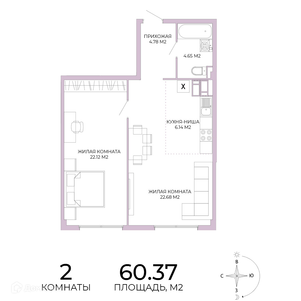 • Площадь - 60.37 м²