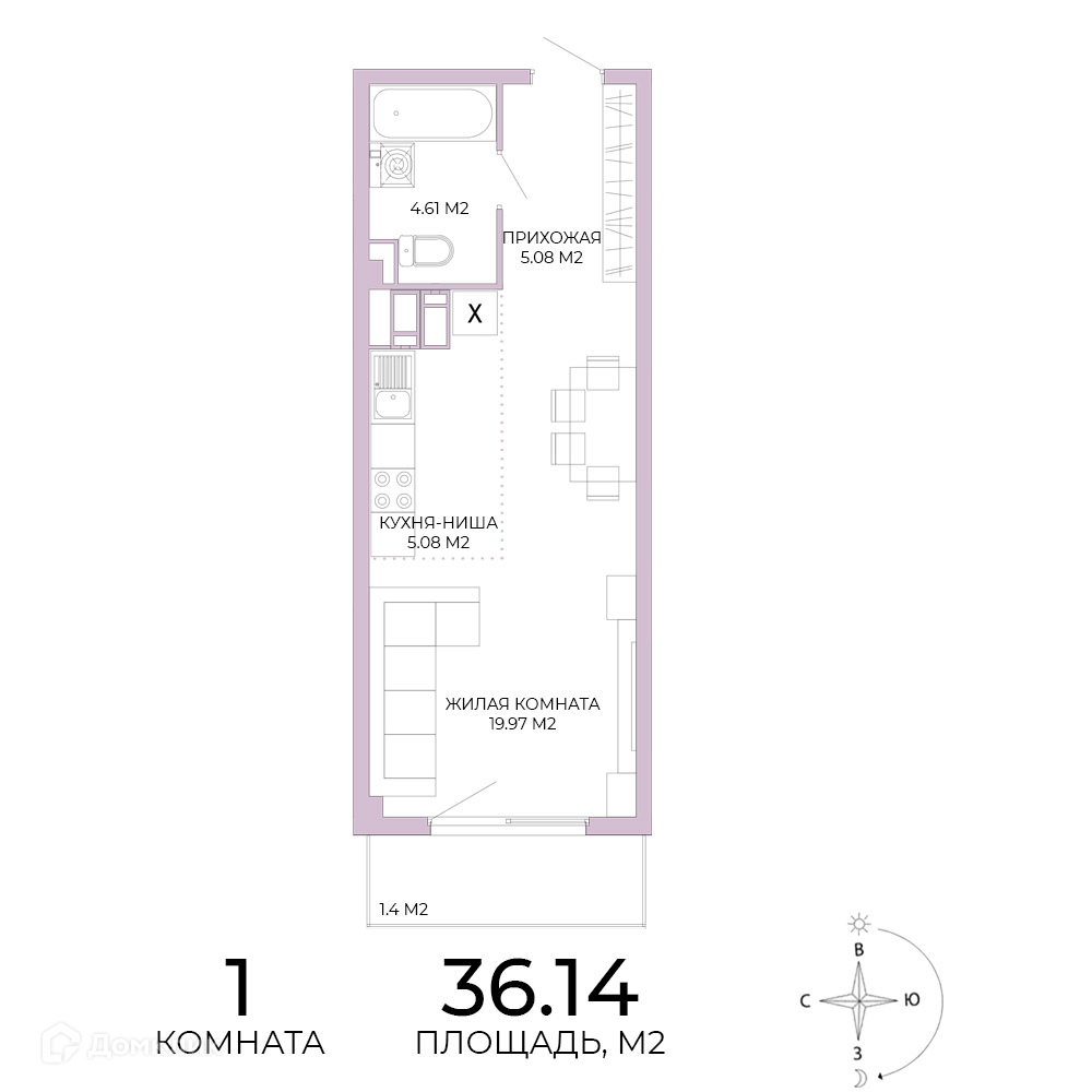 • Площадь - 36.14 м²