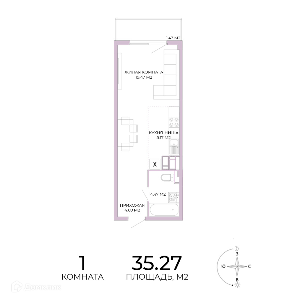 • Площадь - 35.27 м²
