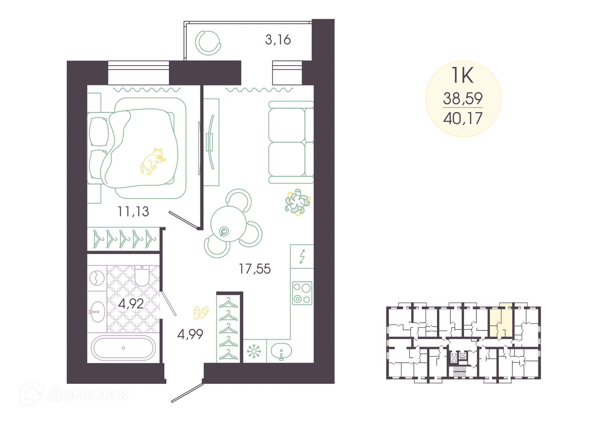• Площадь - 40.17 м²