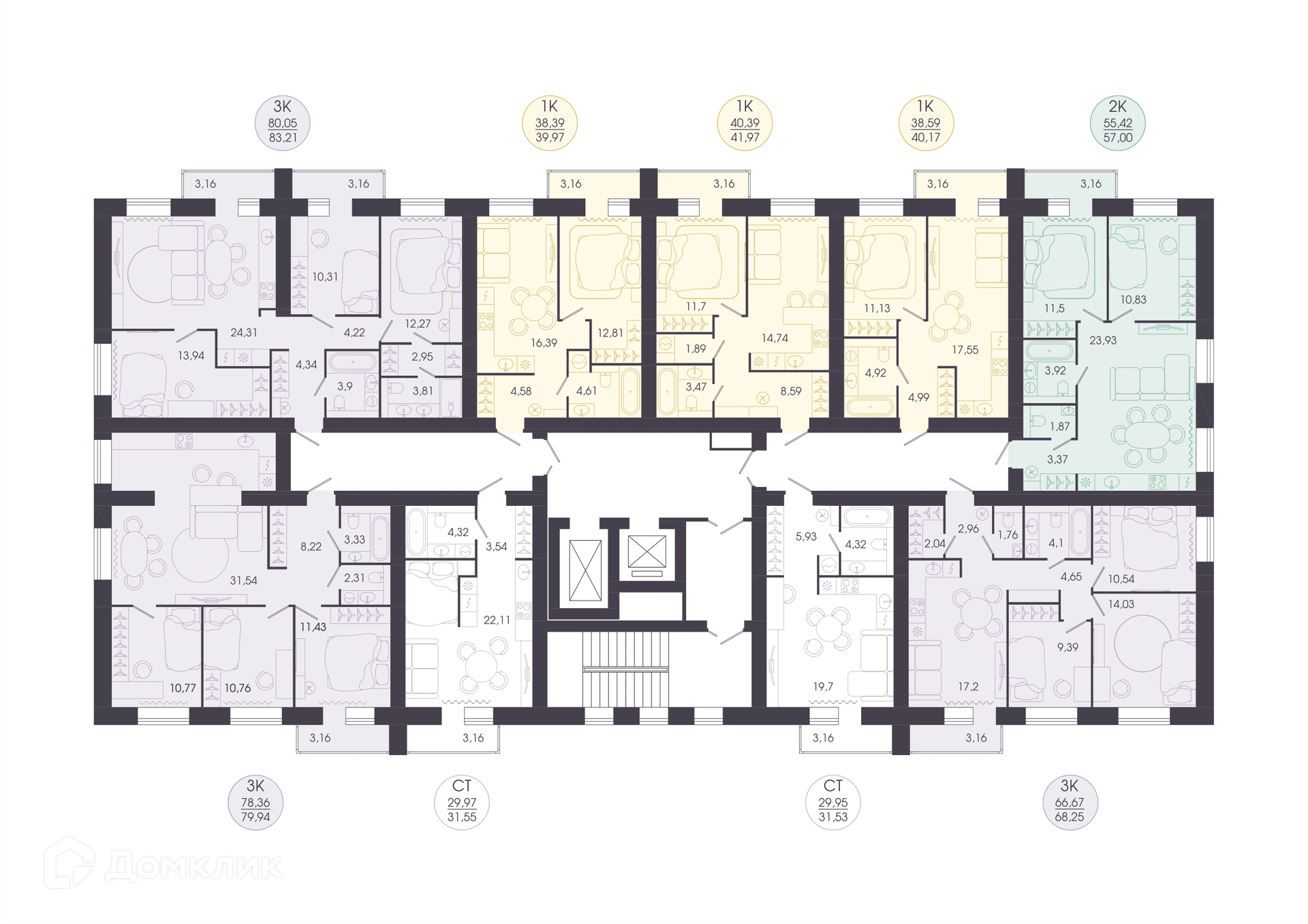 Площади квартир