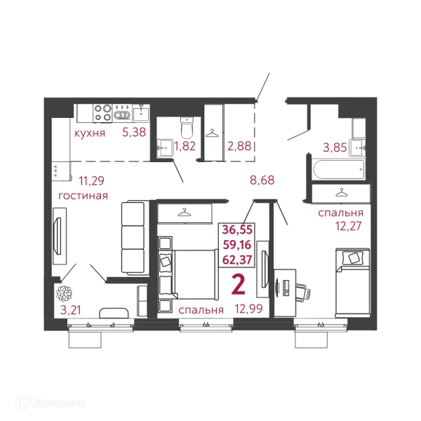 2 комн. квартира в Пензе в ипотеку от 41 319 руб/месяц
